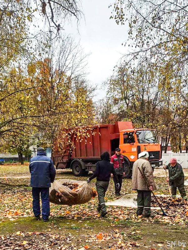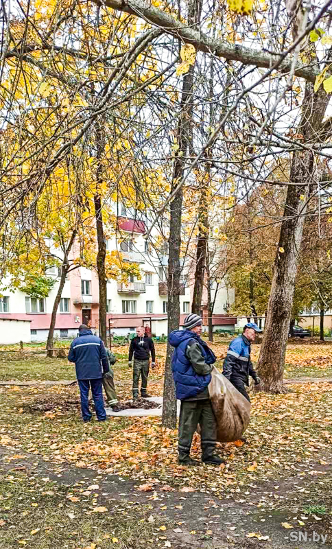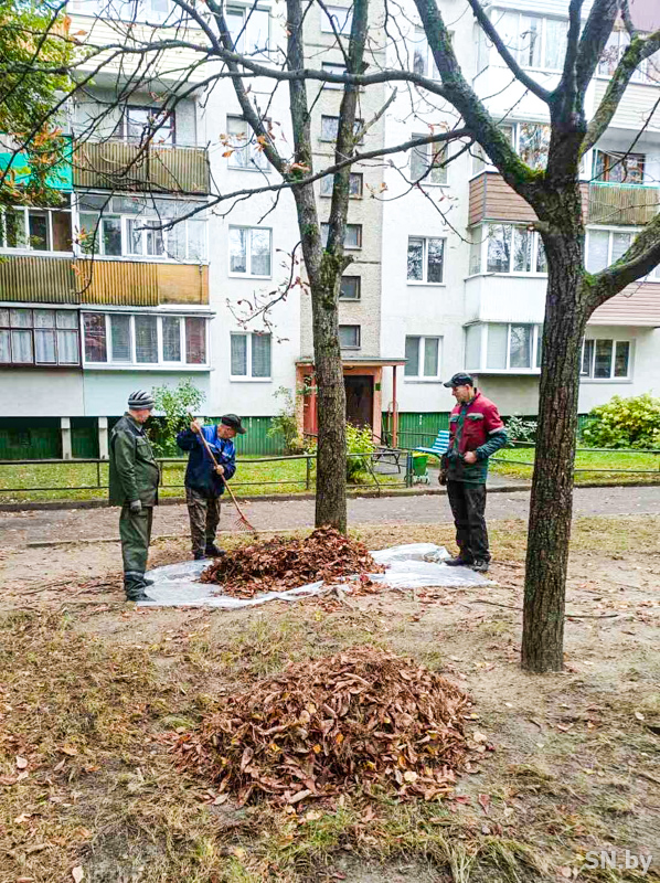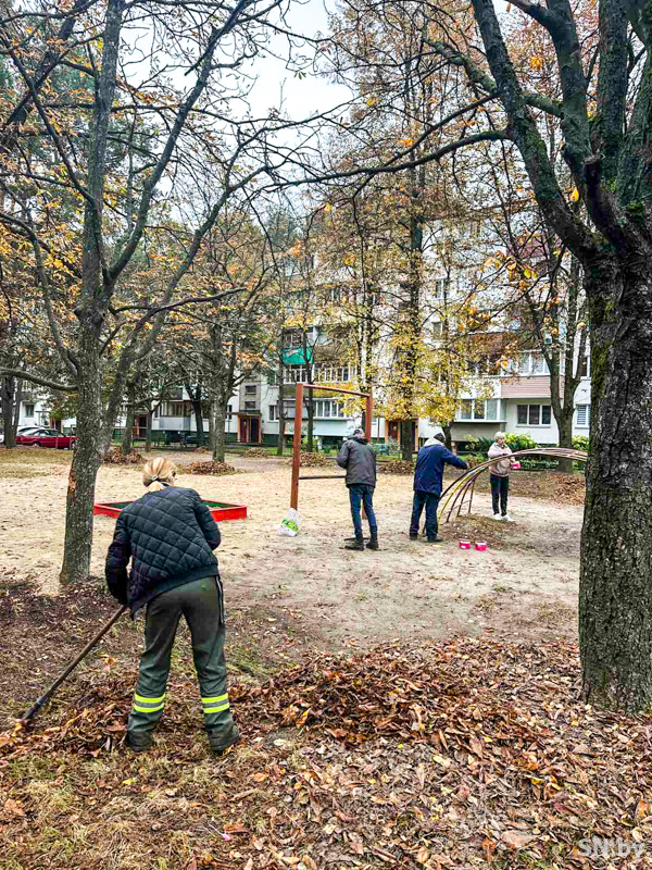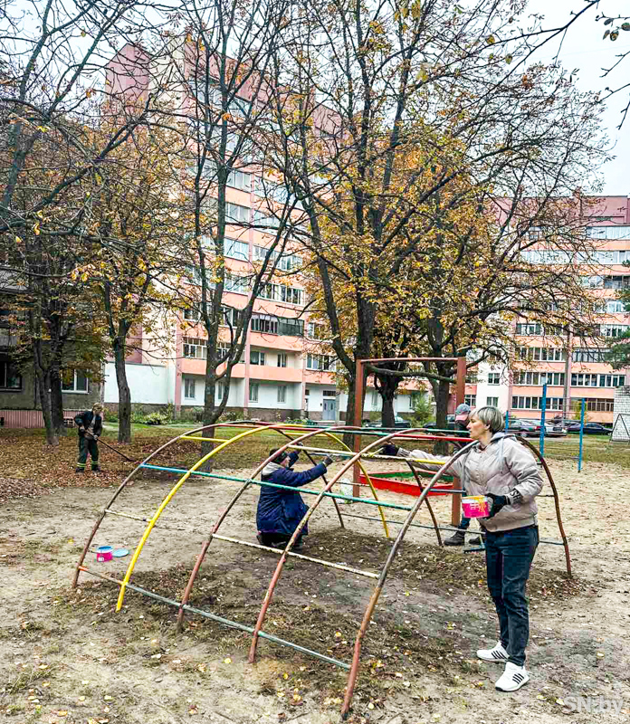 В рамках акции «Сделаем вместе свой двор краше!», приуроченной к Году благоустройства, местные жители вместе с работниками КЖУП «Светочь» делают свои дворы чище и уютнее, не только убирают опавшую листву, но и, воспользовавшись отсутствием дождя, красят игровые формы, скамейки и урны.