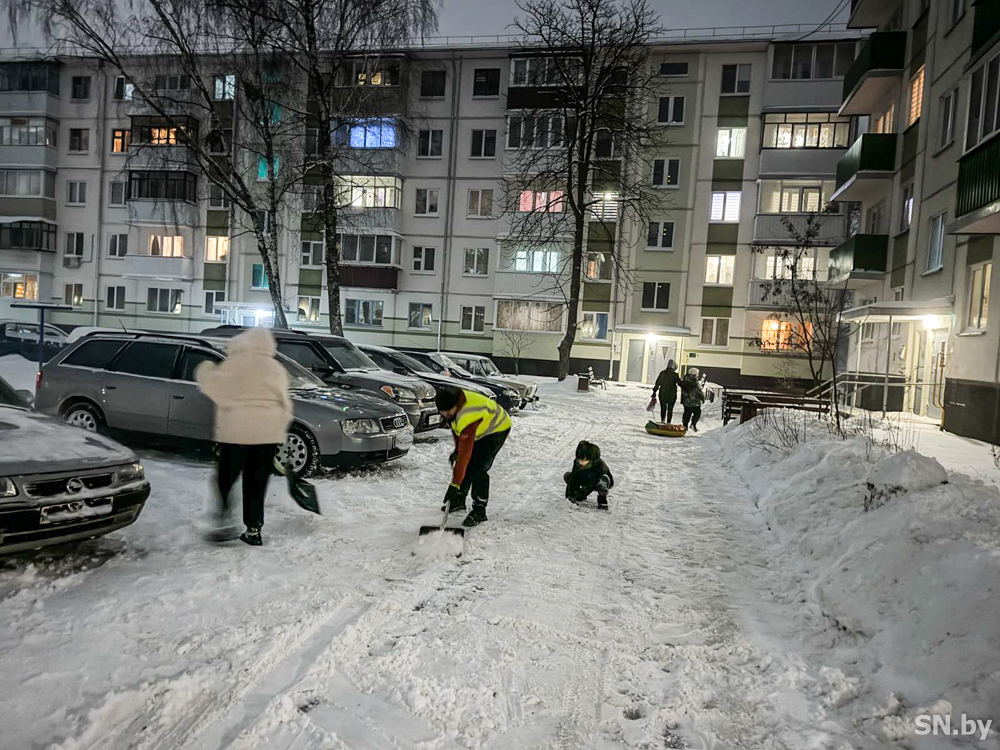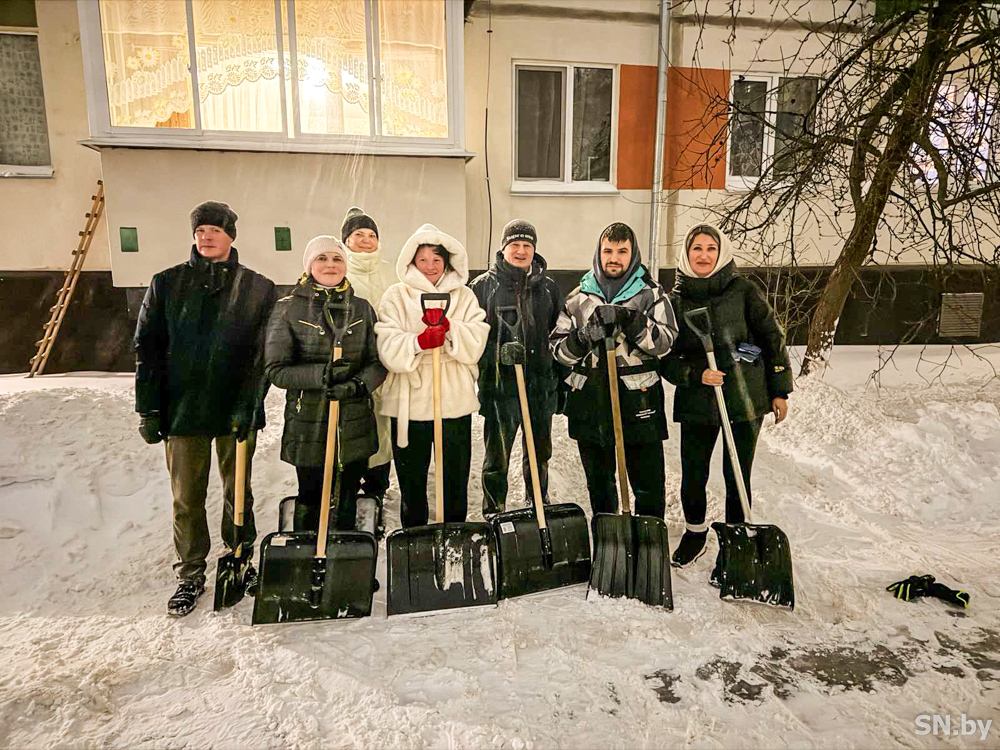 Сплоченная компания дружных соседей, проживающих в д.№9, 14, 16 по пер.Стартовому, поддержала инициативу заместителя генерального директора КЖУП «Светочь» Ольги Бакуновой по уборке снега в своем дворе и присоединилась к челленджу коммунального предприятия #УБЕРЕМСНЕГВМЕСТЕ. Пара часов потребовалась местным жителям для того, чтобы очистить от снега подходы к подъездам, пешеходные дорожки и парковочные места. К работе присоединились не только взрослые, но и дети.