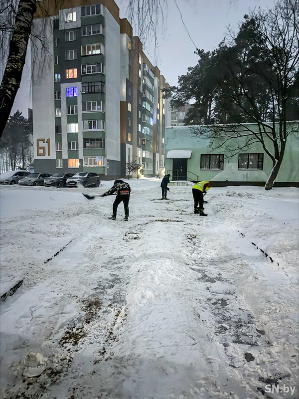 Несмотря на продолжающийся снег, люди активно убирали снег, смеялись и общались, отметили, что в эти зимние дни их главный девиз – «Погода любая нам нипочем, когда мы работаем к плечу плечом!».