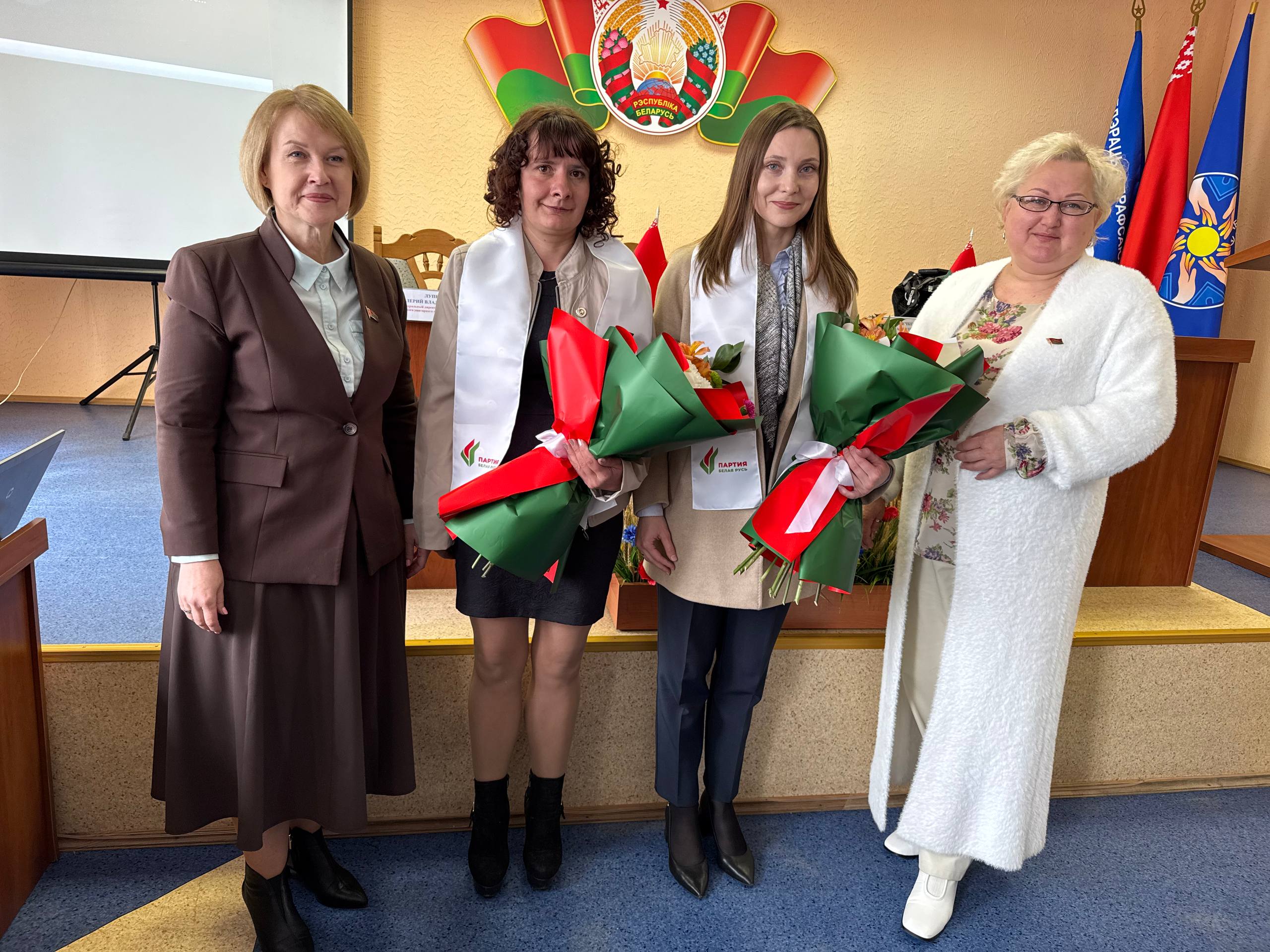 Подарки трудолюбивым, активным и целеустремленным женщинам КЖУП «Светочь» - Юлии Литвиненко и Юлии Кукса - вручили Екатерина Зенкевич и глава районного отделения Белорусской партии Людмила Величко.